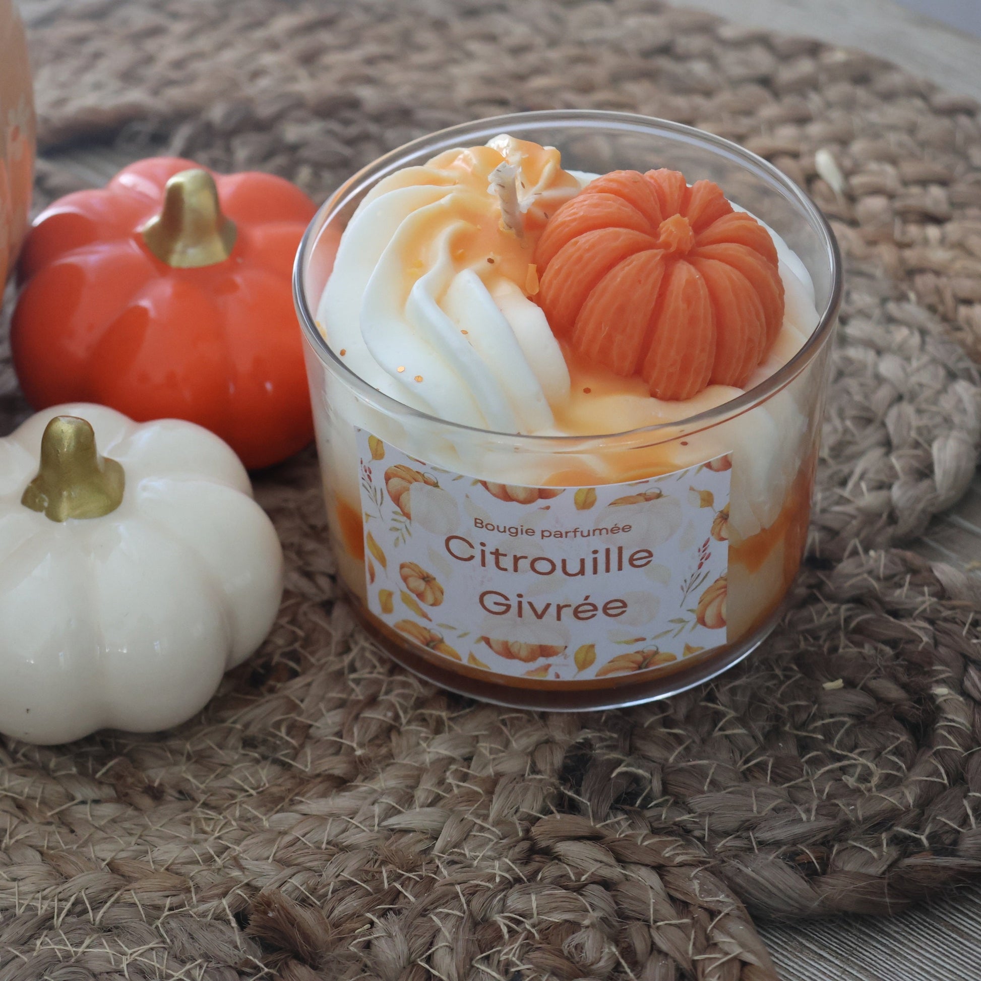 - Parfum "Citrouille Givrée" : une fragrance sucrée et épicée, idéale pour les soirées cocooning.