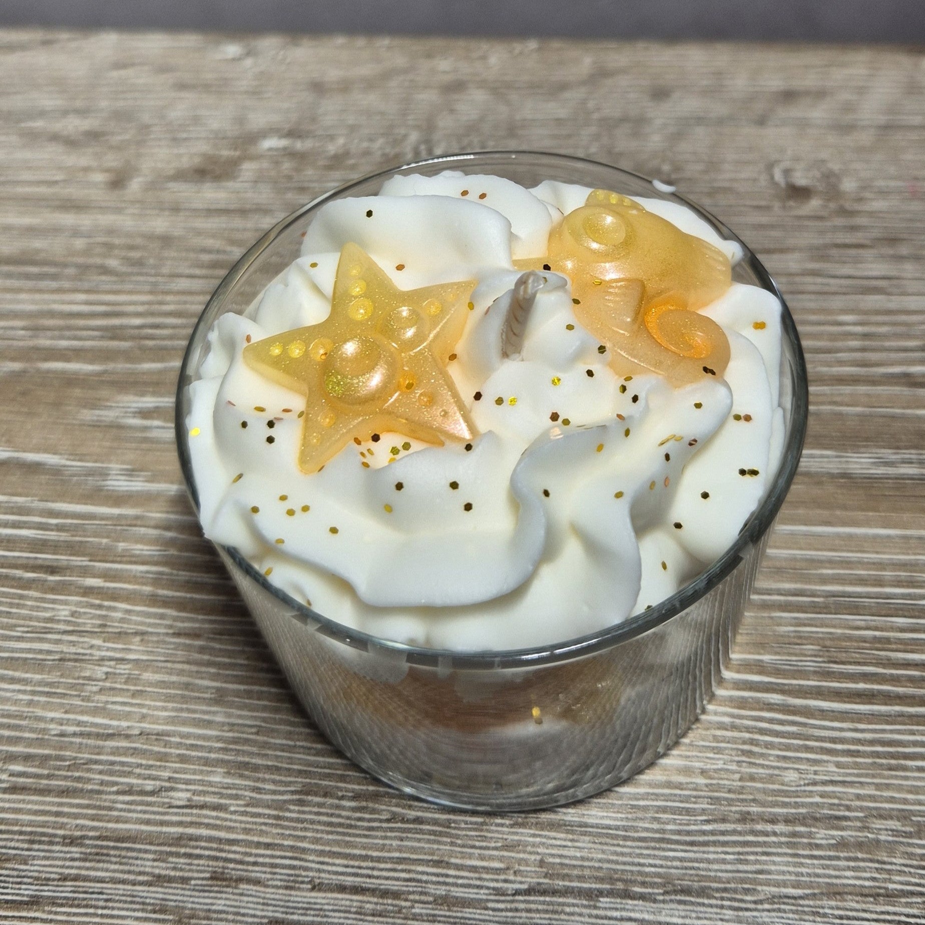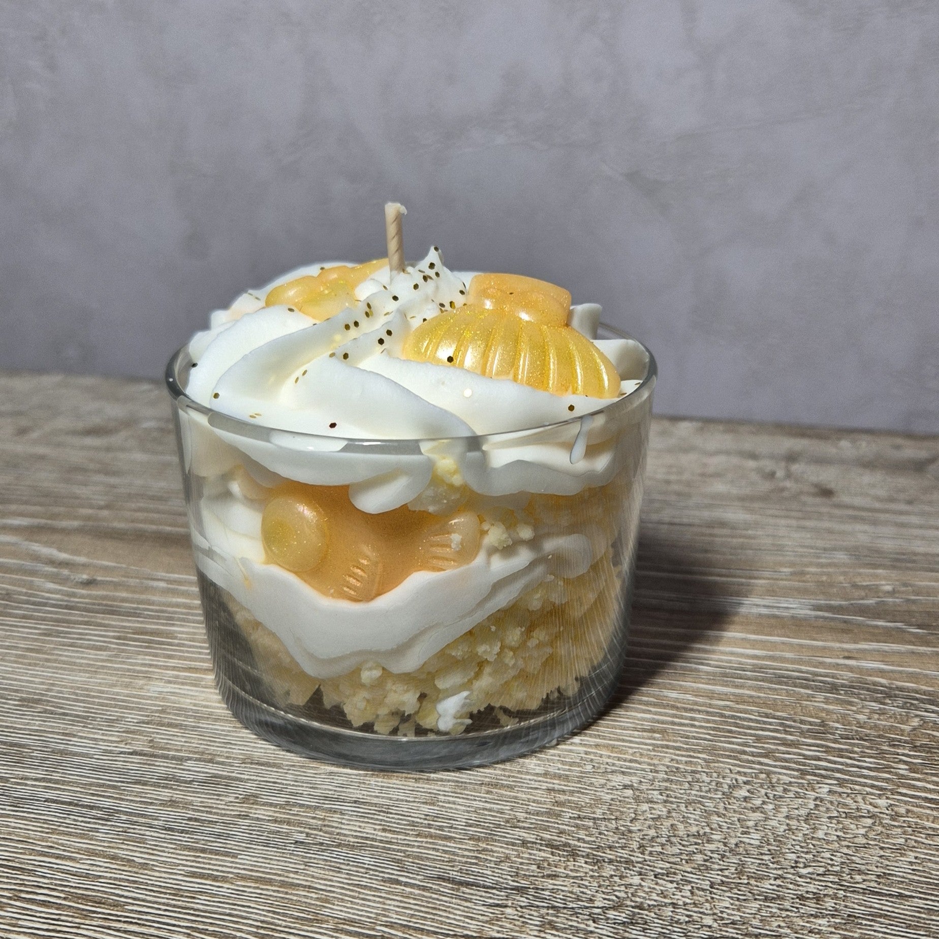 Coulée à la main en France, cette bougie contient environ 170 g de cire de soja 100 % végétale, sans paraffine ni substances CMR. Sa chantilly blanche onctueuse, ses couleurs orange et jaune, et ses petits motifs en cire en forme de poissons et coquillages en font une pièce aussi décorative que parfumée.